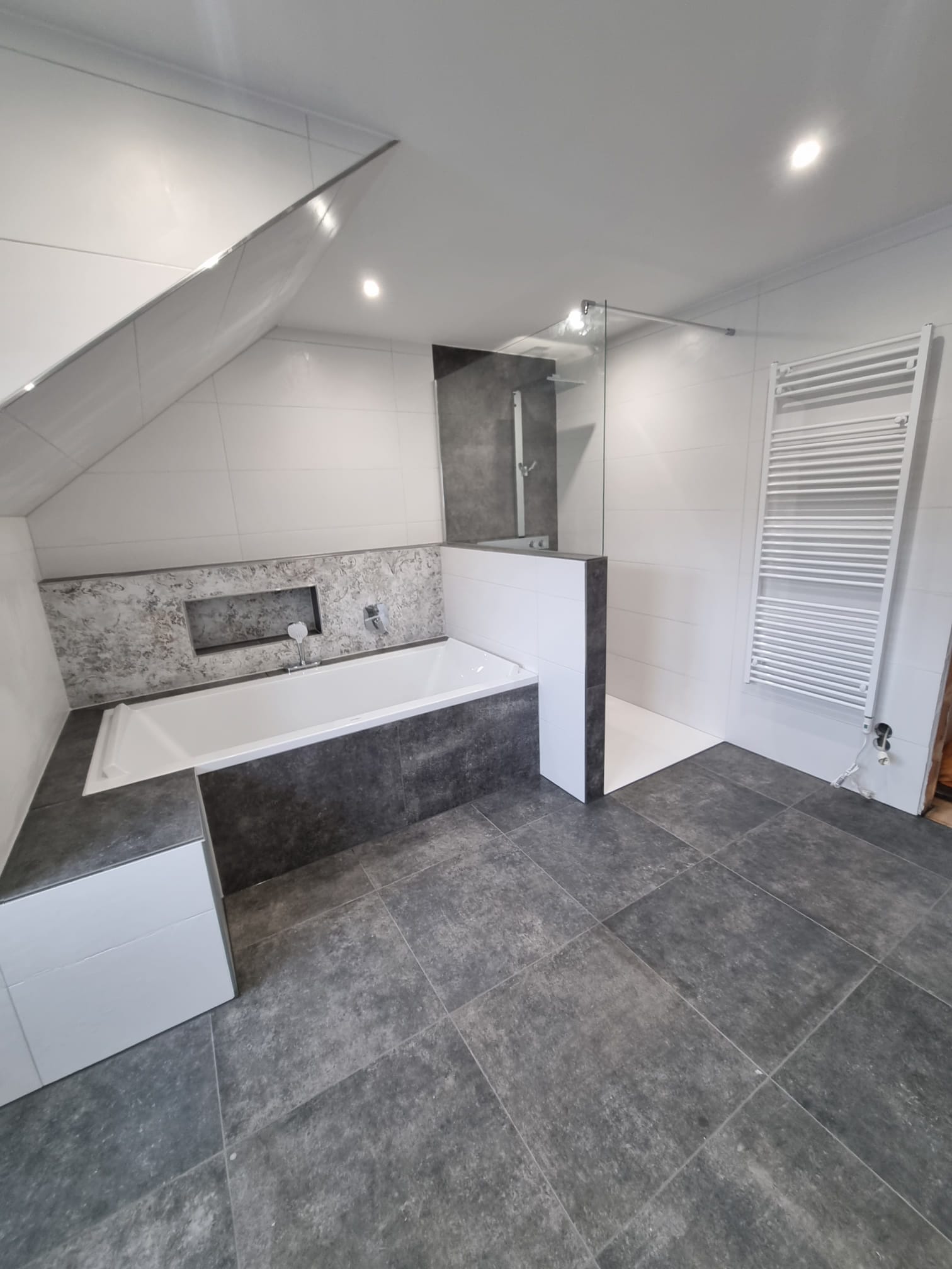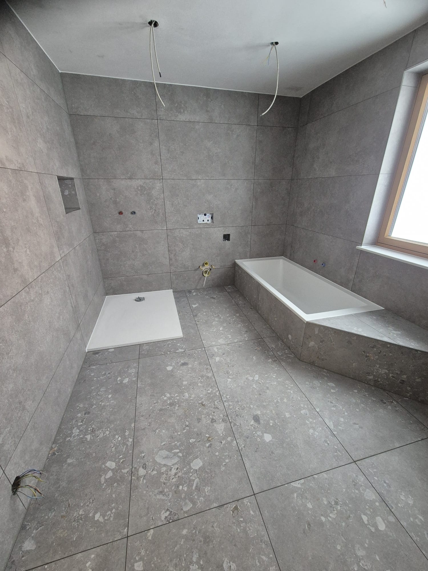 Spezialisierte Verlegung von XXL-Fliesen für eine moderne, fugenlose Optik.